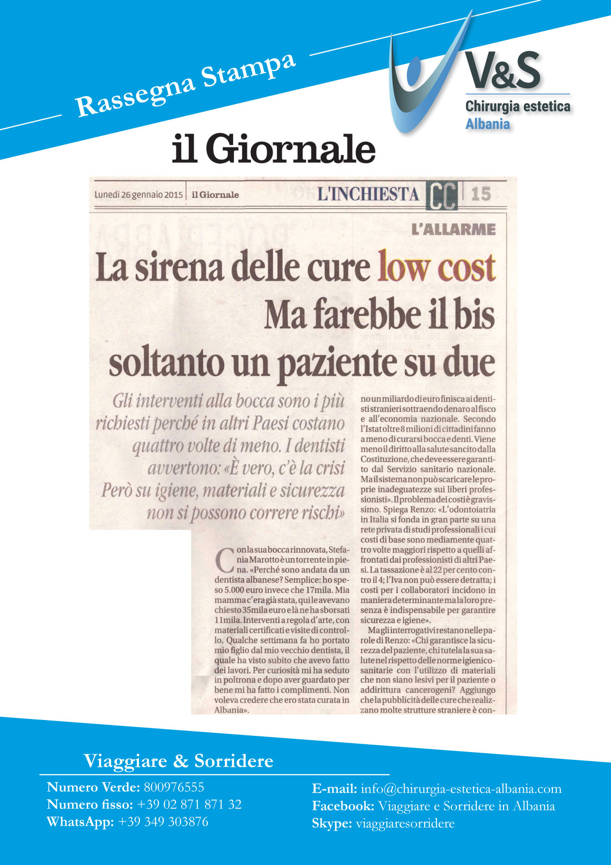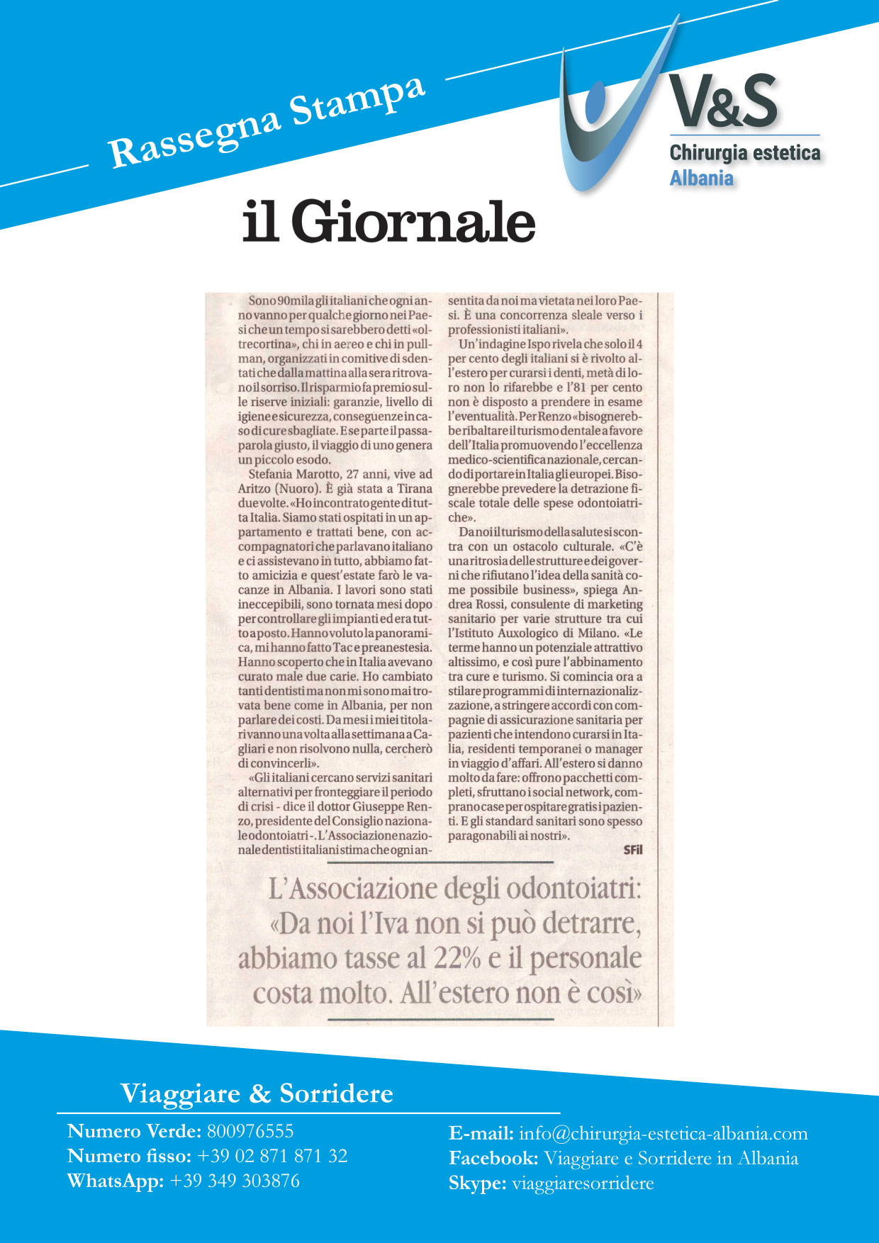 Da Viaggiare e Sorridere ho trovato dei medici straordinari, una qualità dei materiali elevatissima un’ accoglienza fantastica e soprattutto tanto RISPARMIO.